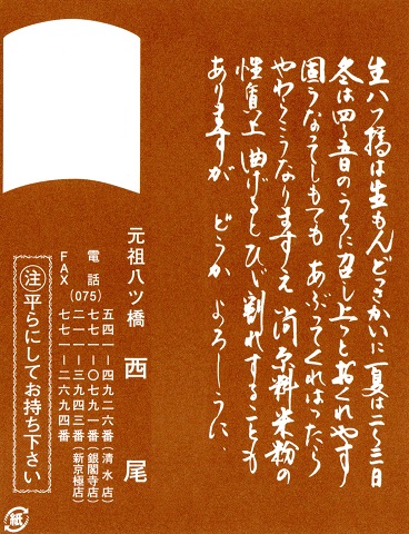 生八ッ橋は、夏は二日から三日、冬でも四日から五日のうちにお召し上がりください